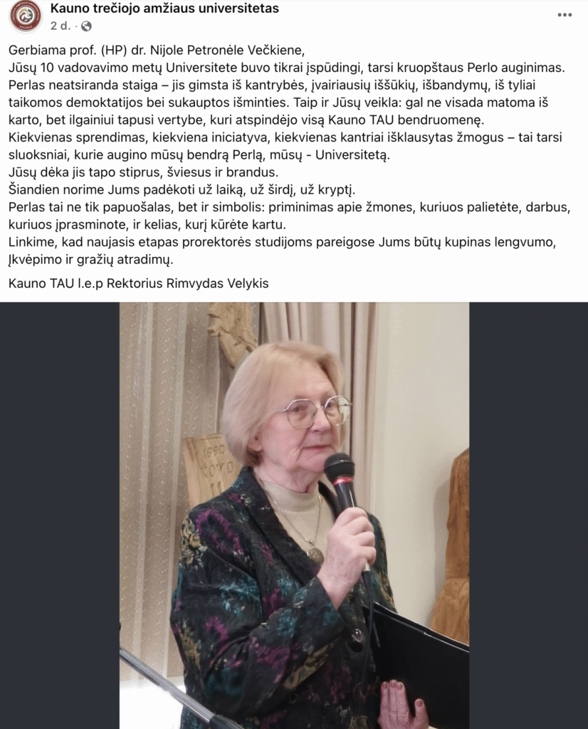 Rektorato vardu, rektorė, prof. dr. Nijolė Petronėlė Večkienė